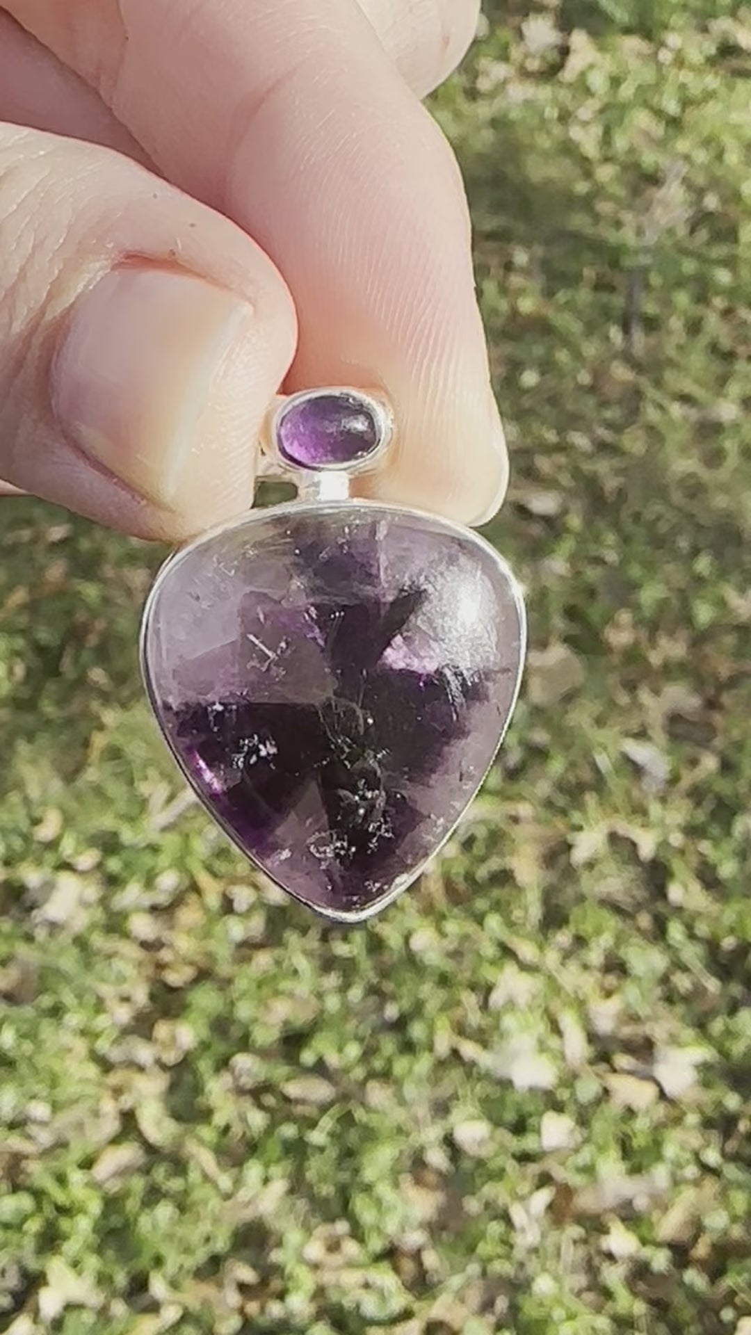 The Trapiche formations inside this Amethyst are super vibrant! This piece hangs 1.25” long and is stamped 925.